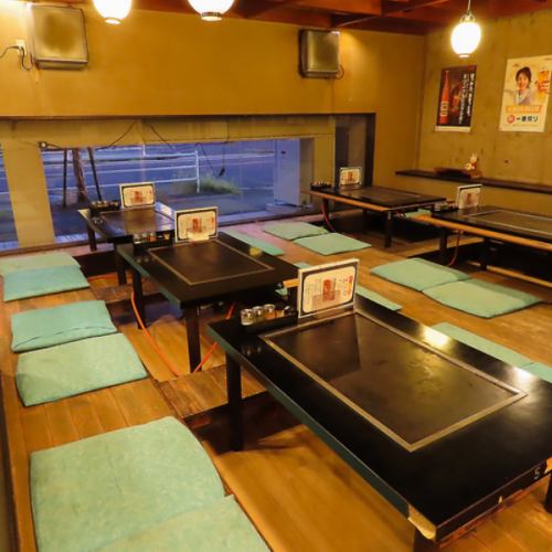 【賑やかな宴会を楽しめる空間♪】当店には大人数でもお越しいただける広々としたお座敷と掘りごたつがあります。貸切も可能ですので宴会のみならず二次会やパーティなど様々なシーンでご利用いただけます。カジュアルな雰囲気の中、当店自慢の鉄板焼きで楽しいひとときをお過ごしください。※貸切の場合要相談