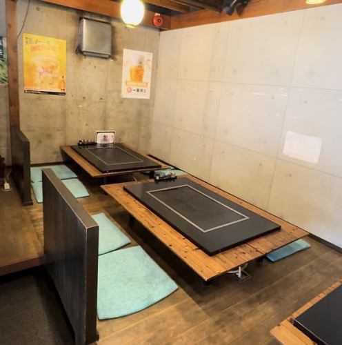 【年齢問わず利用しやすいお席☆】当店にはお座敷と掘りごたつをご用意。状況によっては鉄板を付けずにお料理をご提供できますので小さなお子様連れのご家族でも利用しやすい空間になっております。足を伸ばすことのできる掘りごたつもあるのでご高齢の方でもゆっくりお食事を楽しんでいただけます♪